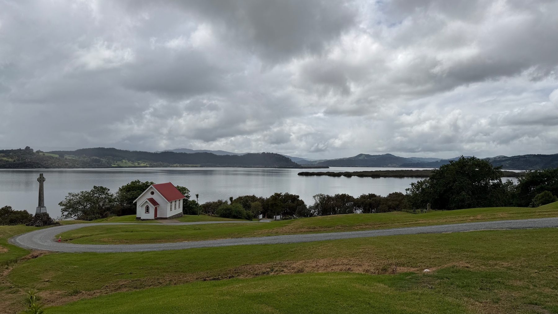 View from the cafe at Māngungu Mission. In the end we biked 8 Km round trip at the west end of the Pou Herenga Tai bike trail.